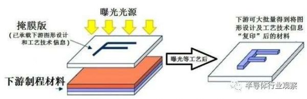 掩膜版是一种由石英为材料制成的,是微电子制造过程中的图形转移工具或母版,其功能类似于传统照相机的“底片”,根据客户所需要的图形,通过光刻制版工艺,将微米级和纳米级的精细图案刻制于掩膜版基板上,是承载图形设计和工艺技术等内容的载体。然后把这种从掩膜版的图形转换到晶圆上的过程,想象成印钞机的工作流程。把光刻机想象成印钞机,晶圆相当于印钞纸,掩膜就是印版,把钞票母版的图形印到纸张上的过程,就像光刻机把掩膜版上的芯片图形印到晶圆上一样。光刻需要用到掩膜版,掩膜版就是把设计好的电路图雕刻在上面,让光通过后,在晶圆上刻出图形。