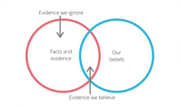 当人确立了某一个信念或观念时,在收集信息和分析信息的过程中,会产生一种寻找支持这个信念的证据的倾向。所以,我们会选择性地相信与已有观念相符的事实。但在一个人的成长过程中,我们需要相反的观点,并对它们背后的逻辑持开放态度。