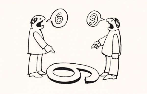 请看下面这张图片,一个人说是 6,一个人说是 9,两个人都觉得自己正确无比。没错,你有自己的观点,但你的观点不见得是客观事实。