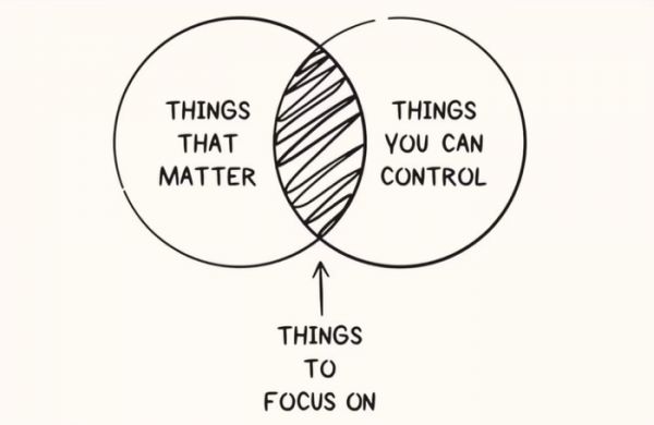 上图中,左侧圆圈代表重要的事情,右侧的圆圈代表你能控制的事情,相交部分表示你需要关注的事情。