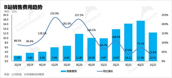 本季度,B站控制支出主要是靠控制销售费用——其中主要是营销、广告费用(包括B站自身和为联运、独代游戏做营销的花销)——本季度销售费用比上季度少花了5亿元。
