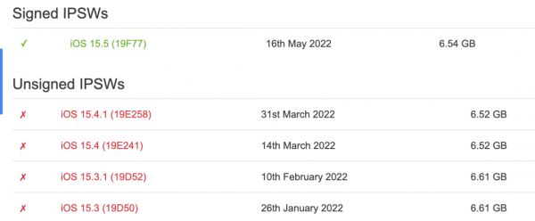 但iOS系统降级有非常严苛的限制,而且有越来越严的趋势。 目前最新的正式版iOS系统为iOS 15.5,也是目前唯一一个可以安装的正式版系统版本,而更早一点的iOS 15.4.1,都关闭验证通道了。 更重要的是,对旧机型来说,升级最新系统,未必能带来体验提升,反而可能会出现卡顿等问题。
