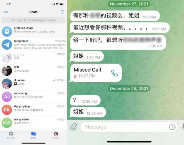 无独有偶,市民庄先生的遭遇同样让人后怕。“前不久我换了一个新手机号,准备注册Telegram账户,结果居然存在已注册的账号,”庄先生表示,通过找回密码的功能,他的手机收到短信验证码,顺利登录账户,结果这是个福利姬的账号,里面全都是陌生人不堪入目的各种言论,给他的心灵带来了不小的打击。