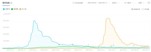 所以我们看到,在“刘畊宏女孩”热度下降一些之后,“潘周聃”话题热度明显被推动,但还没有达到爆款的程度。