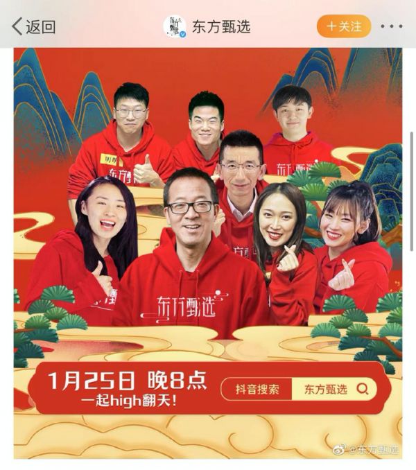 几天前,俞敏洪还在个人公众号中提到,上周带领团队组建了“新东方直播间”队伍,这一队伍将专门来推广新东方优质的教育产品以及其他优质教育相关的产品,包括图书、智能软硬件学习设备、和学习相关的文教用品等。
