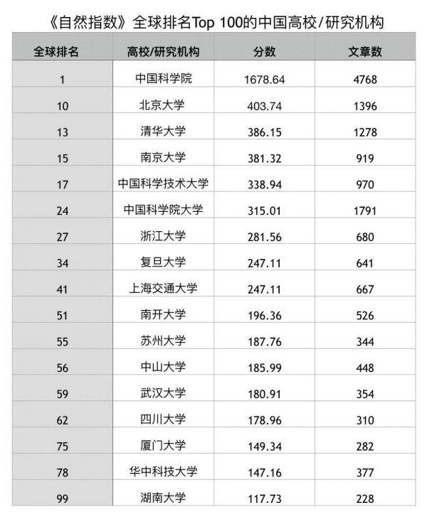 自然指数(Nature Index)是根据全球82种顶级期刊,统计各大高校、科研机构(国家)在国际上最具影响力学术期刊上发表论文数量的数据库。