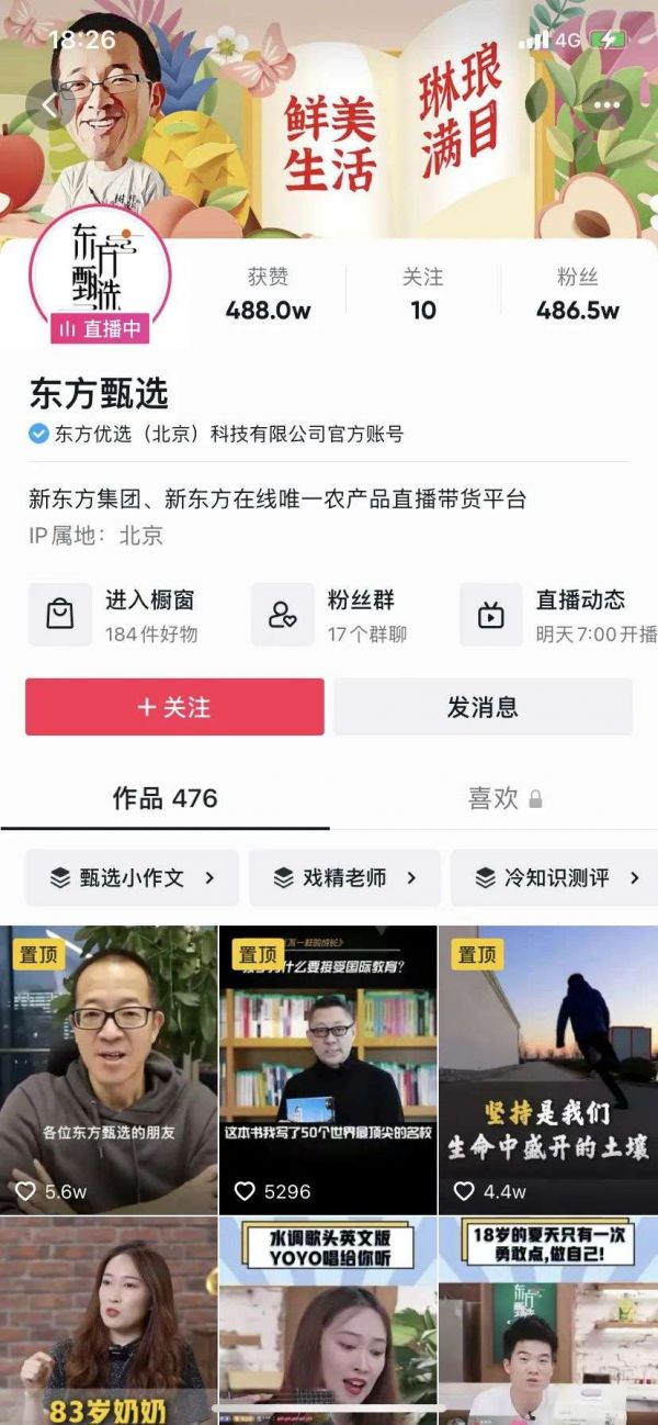 而新东方,于去年底入局,依靠经营多年的品牌基础和创始人俞敏洪的正能量人设,为东方甄选攒了一波自来水。