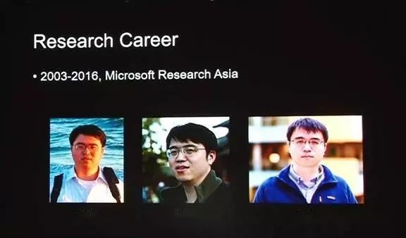 “很辛苦”的论据来自孙剑背后的三张照片,第一张拍摄时间为2003年,最后一张是2016年,与之对应的,分别是他进入和离开微软亚洲院的时间,而最明显的变化,则是发量的日渐稀疏。