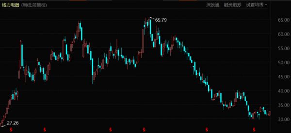 格力的情况相对复杂一些,这也不是一笔单纯的二级市场投资。格力电器也可称得上是高瓴迄今为止投资业务中最大的一次“滑铁卢”,其416.62亿元、9.02亿股的投资换来15%的股份之后,股价下跌连绵不绝、最近股价32元,持有市值约288亿元。