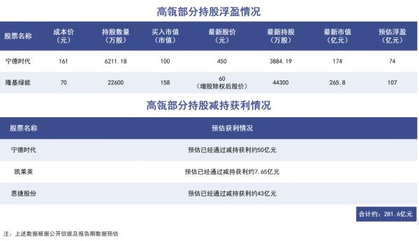 以此测算,上述项目合计浮盈(含减持获利)约280亿元左右。
