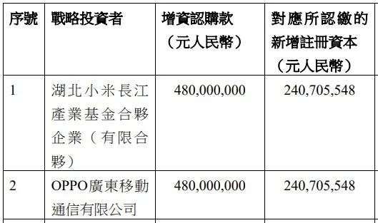 据诚瑞光学招股书,湖北小米、OPPO广东是在2020年7月引入的战略投资者,湖北小米、OPPO广东均以1.9941元/注册资本额的价格认缴2.41亿元的新增注册资本,投资额均为4.8亿元。此次IPO前,湖北小米、OPPO广东均持股2.41亿股股份,各持股比例为3.56%。