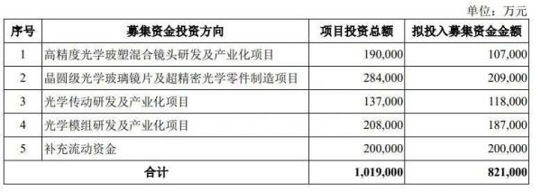 诚瑞光学此次IPO拟募资82.1亿元,创造2022年科创板IPO纪录。据招股书,诚瑞光学募资将分别用于高精度光学玻塑混合镜头研发及产业化项目、晶圆级光学玻璃镜片及超精密光学零件制造项目、光学传动研发及产业化项目、光学模组研发及产业化项目、补充流动资金。而截至2021年底,诚瑞光学归属于母公司所有者权益为72.62亿元。