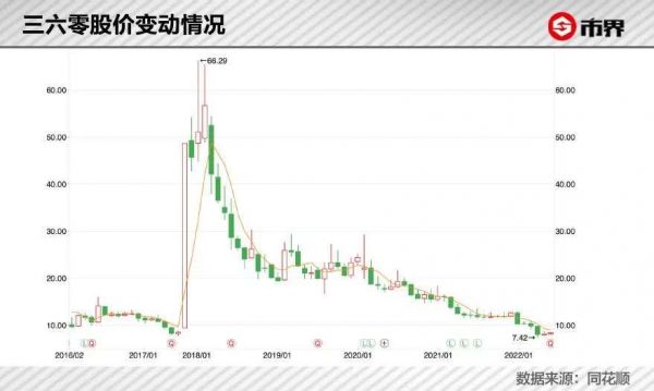 可惜从此之后,三六零股价一路向下,业绩也持续下滑。