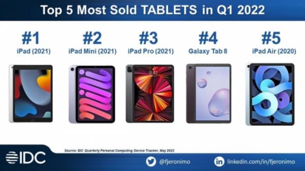 IDC 最新报告显示,入门级的 iPad 是今年第一季度全球最畅销的平板电脑。作为走量型号,入门级 iPad 一直以来都足够卖座,通常能占到 iPad 出货量的一半以上。