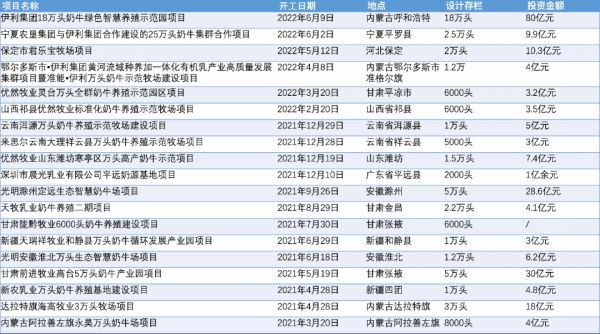 6月9日,伊利18万头奶牛绿色智慧养殖示范园项目启动。该项目规划范围8万余亩,预计总投资金额约80亿元,实现年产奶量100万吨以上,带动周边50多万亩饲草基地建设,每年直接产生经济效益30亿元以上,间接产生经济效益70亿元。