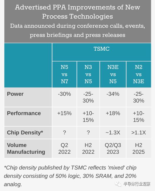*请注意,台积电在 2020 年左右才开始分别发布针对模拟、逻辑和 SRAM 的晶体管密度增强。其中一些数字仍然反映了由 50% 逻辑、30% SRAM 和 20% 模拟组成的“混合”密度