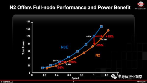 从功能集的角度来看,台积电的 N2 看起来是一项非常有前途的技术。至于实际数字,台积电承诺 N2 将让芯片设计人员在相同功率和晶体管数量下将性能提升 10% 至 15%,或者在相同频率和复杂度下将功耗降低 25% 至 30%,同时,与N3E 节点相比,芯片密度增加了 1.1 倍以上。
