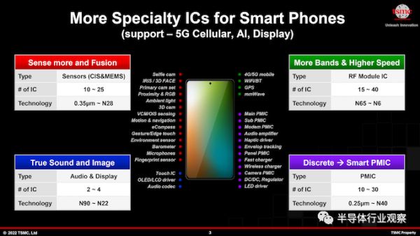 现代智能手机、智能家电和个人电脑已经使用了数十种芯片和传感器,而这些芯片的数量(和复杂性)只会越来越多。这些零件使用更先进的专业节点,这也是台积电等公司必须扩大原本“旧”节点的产能以满足未来几年不断增长的需求的原因之一。