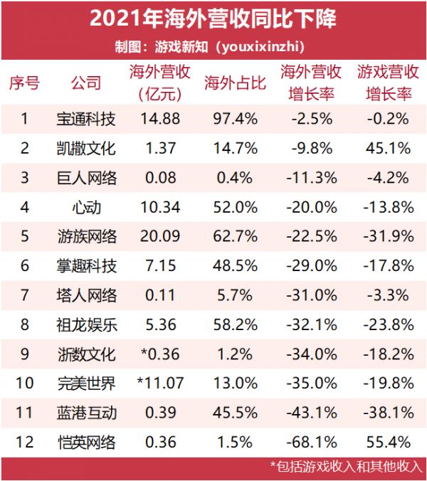 注意:本文基于上市游戏公司的2021年年报,统计出部分公司的海外营收数额及其占比。需要明确的是,部分统计对象的海外营收包含了游戏业务以外的营收、以及代理产品、授权产品等产生的海外收入,所以榜单排名及其数值与第三方的调研数据存在一定的差异,营收数额和收入排名仅供参考。