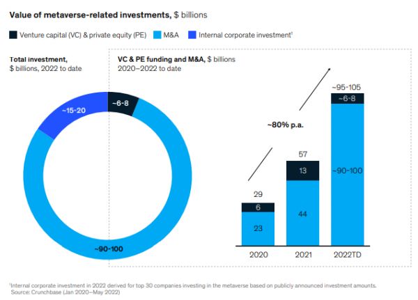 今年以来,已有超过1200亿美元的投资流入元宇宙;是去年全年投资的570亿美元的两倍多。大量投资表明对元宇宙发展潜力的信心。
