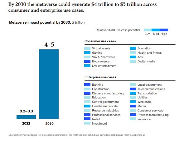 基于消费者和企业用例,麦肯锡预测到2030年它可能产生高达5万亿美元的价值。
