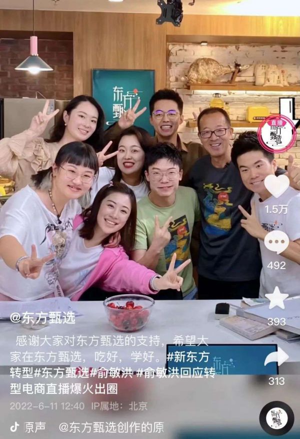 也是在近日,俞敏洪在个人微信公众号“老俞闲话”中表示,公司组建了“新东方直播间”团队,该团队将专门推广新东方优质的教育产品以及其他优质教育相关的产品,包括图书、智能软硬件学习设备和学习相关的文教用品等。