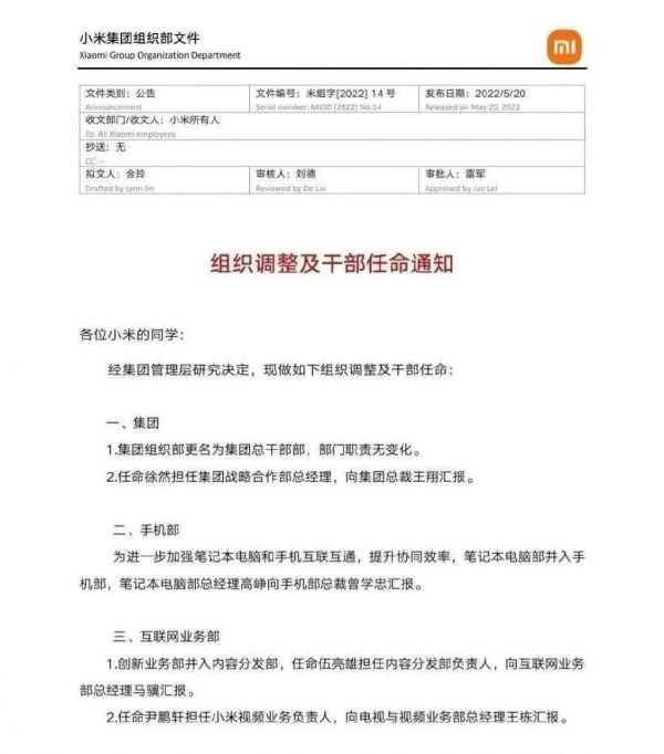 另一方面,则是对内部业务重新调整。在5月21日,小米内部宣布为加强笔记本电脑和小米智能手机的互通互联,将笔记本电脑并入手机部门。这也是小米内部对苹果生态的重新理解,如果还在将笔记本、Pad和智能机分类管理,那小米核心设备的互联互通甚至会落后荣耀生态。