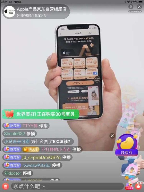 今年618因为各家平台的大力度扶持,iPhone 13迎来自上市以来优惠力度最大的一段时间,但当摩拳擦掌准备换手机的用户在6月17日晚上8点准时打开京东的苹果自营旗舰店的直播间,却发现直播间iPhone 13的价格还没有月初卖得便宜。