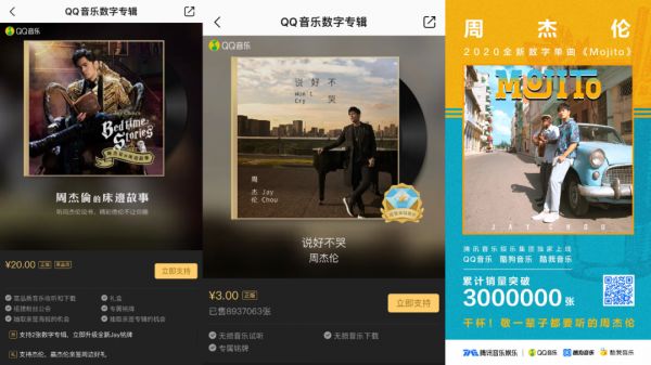随后八年,“周杰伦”这个名字不定期就会与数专业态发展绑在一起。16年他的《周杰伦的床边故事》售出1157865张,做到了口碑与销量齐飞。19年《说好不哭》单曲狂卖8937056张,20年《Mojito》再卖6973758张,销量飘红之同时,实现了付费作品还能在传播广度上刷屏全网的营销神迹。