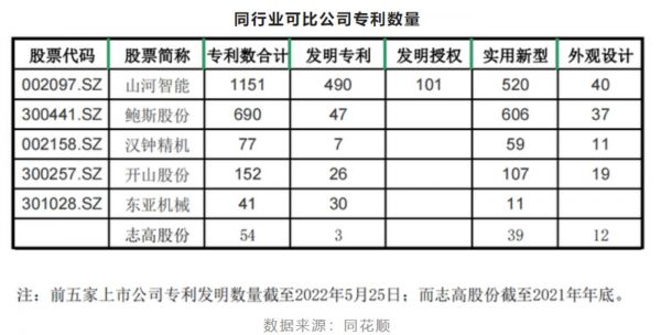 然而,就专利数量而言,与同行相比志高股份存在一定差距。