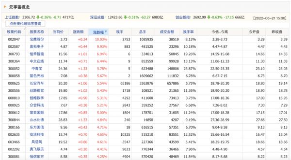 ▲截止6月21日收盘时,元宇宙概念股板块情况(来源:搜狐证劵)