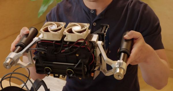 从图片中可以看出,相较于其他三款设备,这是一款处于研发早期,比较笨重的VR头显,扎克伯格需要借助手柄将其举起。