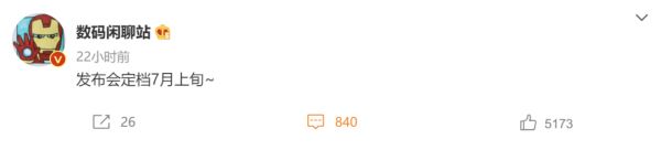 按照@数码闲聊站的说法,小米下半年的旗舰机发布会,将于7月上旬召开,距今不到20天。小米CEO雷军今日也在微博宣传骁龙8+ Gen 1和新机,侧面佐证了这则爆料的准确性。