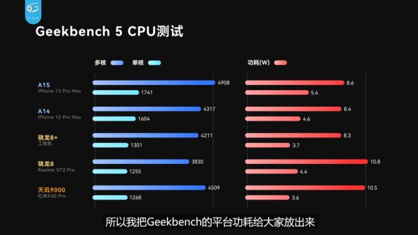 骁龙8+ Gen 1单核跑分1301分,提高3.7%,多核跑分4211分,提高10%。与联发科旗舰CPU天玑9000相比,骁龙8+ Gen 1单核跑分略胜,多核跑分略逊一筹。其实现在旗舰处理器的性能都不再是瓶颈了,高负载环境并不多,重点在于功耗问题。