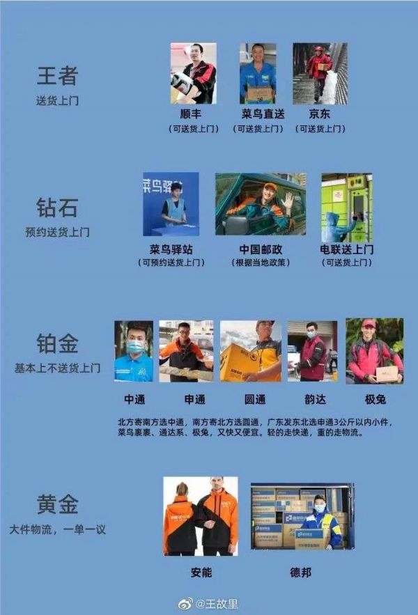 无独有偶,前几天618期间,微博有个热搜#快递送货上门段位图鉴#。