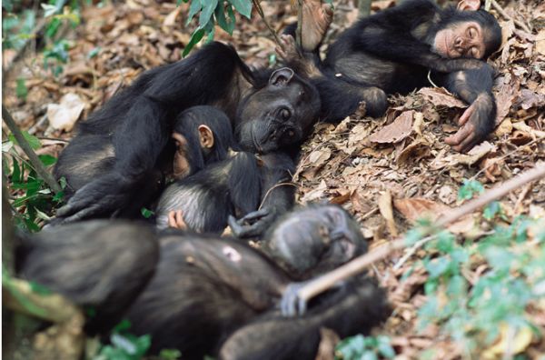 阿努普·沙阿(Anup Sha)/Agefotostock坦桑尼亚,一个黑猩猩家庭在休息。演化人类学家大卫·萨姆森认为,人类演化为在他人陪伴中睡眠。