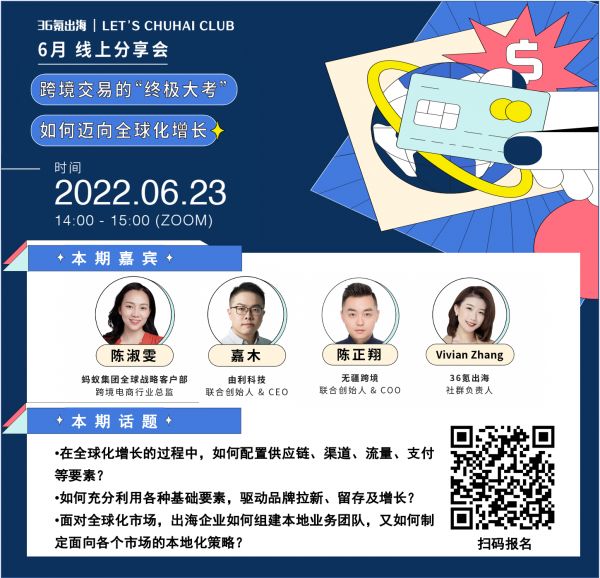 36氪出海|CLUB 持续招募企业决策者,6月份线上分享会倒计时1天,探讨跨境交易与全球化增长洞察