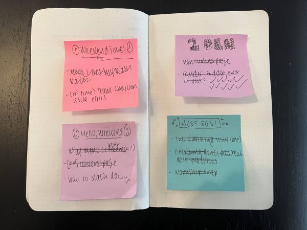 在接下来的一周里,我会把这些便利贴转移并张贴到不同的地方,包括笔记本封面、笔记本内页、待办事项清单旁、键盘内侧。有的时候,如果快到周末但任务真的非常紧急的话,我甚至会将它张贴在浴室的镜子上。