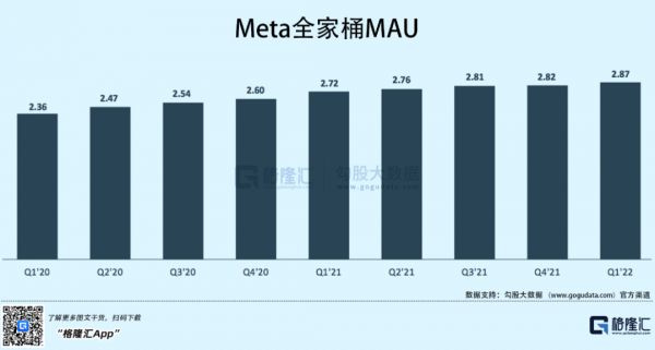 22Q1,Meta的平均DAU(日活跃用户)和MAU(月活跃用户)分别达到28.7亿和36.4亿。由于俄罗斯入侵乌克兰始于2月下旬,其后果可能会持续到第二季度。因此,Q2 2022年的活跃用户数量很可能下降。