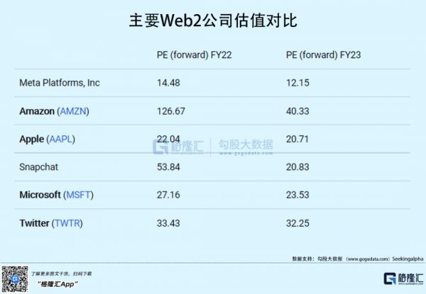可以直观看到,在一众Web2代表公司中,Meta的PE不管是22年还是23年预期,都低了不止一个档次。