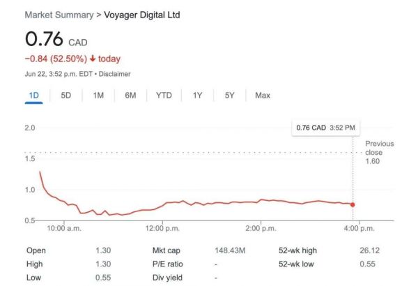 此外,今天加密平台 Voyager Digital在披露了对三箭6.6 亿美元的风险敞口后股价一度暴跌60%。但同时它也表示,由FTX CEO背书的Alameda Venture上周为其提供了价值 2 亿美元和USDC 稳定币以及1.5万个比特币的信贷额度,用以帮助缓解客户的流动性需求。