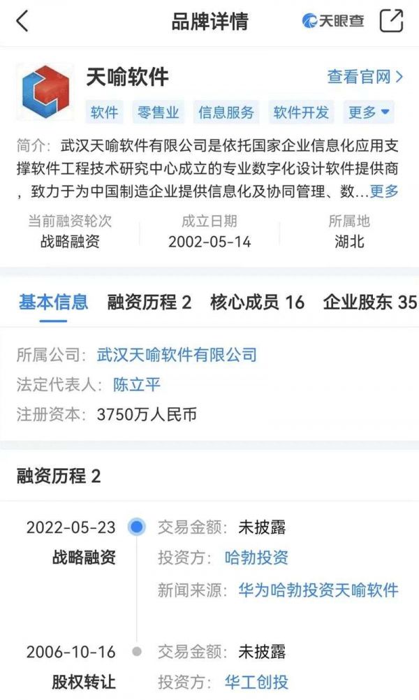 今年五月,华为哈勃又投资 一位华科教授。被投企业为天喻软件,主要研究工业软件,投资后华为哈勃持股约25.5%,为第一大股东。天喻软件创始人陈立平为华科副教授,这个项目脱胎于华科CAD中心,在华科内部研究几年后才独立成立,以公司为主体运作。