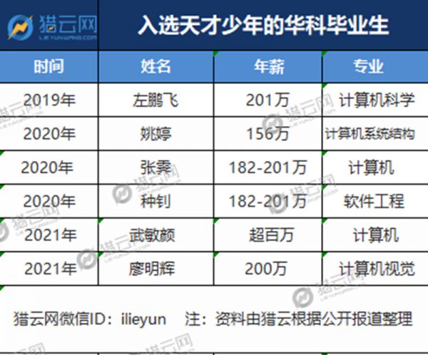 天才计划推出后,同年12月,华中科技大学武汉光电国家研究中心的2014级直博毕业生左鹏飞,拿下了最高档200万年薪。