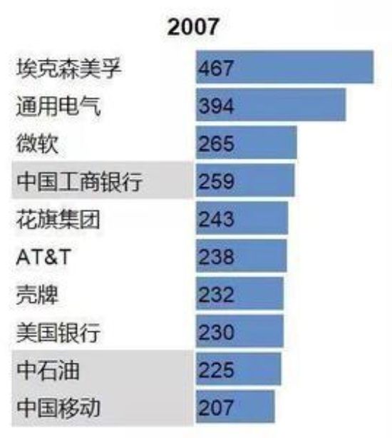 而仅仅15年前的2007年,这个Top10榜单还是下面这些公司——