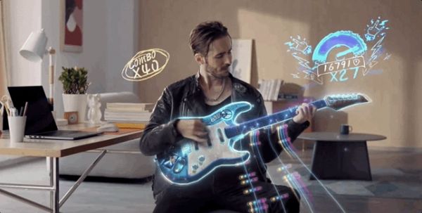 而且用户也可以抛开手柄,带着自己的双手直接使用VR头显,比如在虚拟世界中“空手弹吉他”。