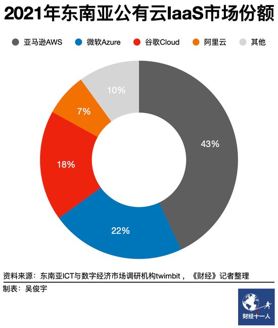 《财经十一人》多方了解到,阿里云2021年海外市场营收超过20亿元,东南亚在其中占有较大份额。2021年阿里在投资者日上宣布,阿里云在东南亚市场的增速超过60%。一位阿里云管理层今年初曾对《财经十一人》表示,海外是阿里云增速最快的单元,但更多是自然增长的结果。