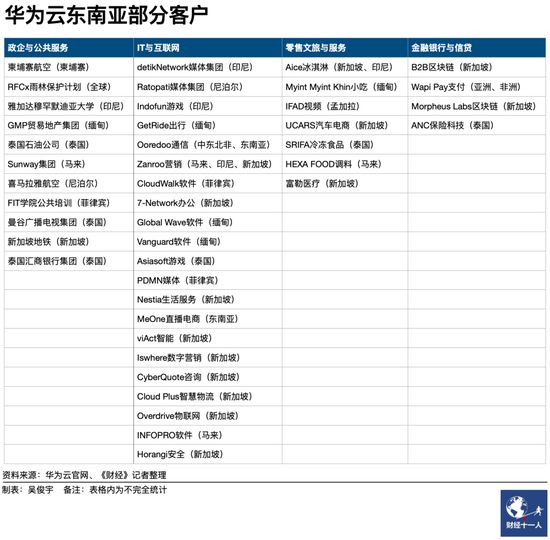 目前,新加坡、印尼、泰国、马来西亚乃至缅甸等国家均有中国公司参与建设的重要政企数字化项目。譬如,华为云服务了新加坡地铁、泰国国家石油公司等,阿里云服务了泰国国家电信、印尼公住房管理局。