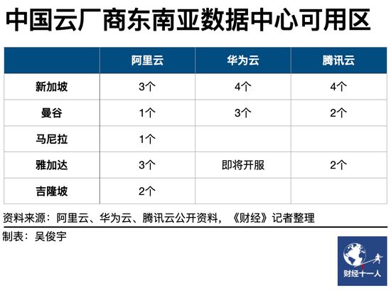 布局东南亚首先需要有云基础设施。阿里云目前在新加坡、雅加达等5个城市开设了数据中心,共有9个可用区域。华为云在2个城市开设了数据中心,共7个可用区域。腾讯云在3个城市开设了数据中心,共8个可用区域。