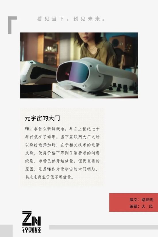 内容的缺乏并不影响互联网大厂们加码VR赛道,尤其是在元宇宙概念的推动下,VR已被看作是开启下一代互联网大门的钥匙,重要性可见一斑。
