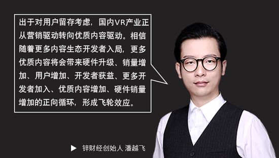 作为智能硬件之一,VR厂商也遵循内容+设备的发展路线。可由于整个行业还太小,导致内容生态上缺乏创新,厂商无法通过优质内容持续吸引客户,从而达到硬件到软件的商业闭环,去持续扩大市场。
